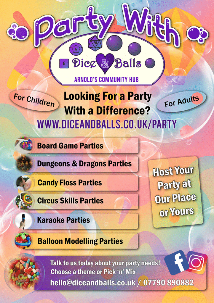 You can host your party at our community hub in Arnold (Studio 8, The Old School Business Centre), or we can bring the party to you. We’re all about flexibility and making it easy.